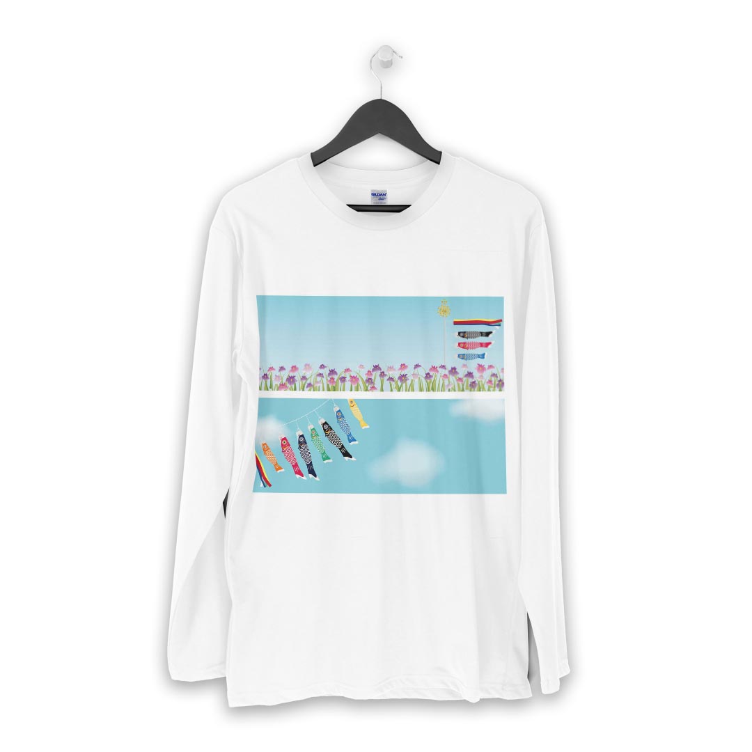 ロング tシャツ メンズ 長袖 ホワイト グレー デザイン XS S M L XL 2XL Tシャツ ティーシャツ T shirt long sleeve 015381 こどもの日 鯉のぼり 兜 熊